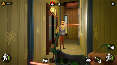 1.由于是第一次玩《你好邻居日记》,所以进入游戏后选择一个新游戏即可。游戏开始后跳过剧情动画,会出现按钮介绍。左下角的操纵杆按钮控制角色的移动,右下角的跳跃和蹲伏按钮控制角色的移动。单击一次跳跃,长按蹲下。