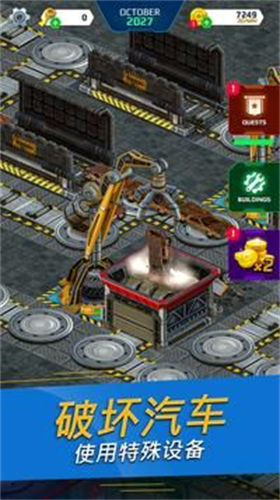 玩家可以将这些零件整合起来,然后重新组装成一辆全新的汽车。通过回收各种废旧车辆,每辆车成功分解,所有材料分类收集。