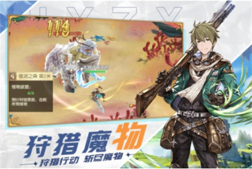 3、不同等级的猎物等着你去打败,你可以组队迎接不同的挑战,认识更多的朋友,让你体验更多不一样的乐趣。