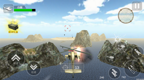 并从合适的角度发动歼灭敌人的任务,期间敌人也会以猛烈的炮火进行攻击。玩家在飞行和攻击过程中要注意躲避敌人的炮火攻击。甚至还有各种导弹系统,包括机枪、空对空导弹、空对地导弹。