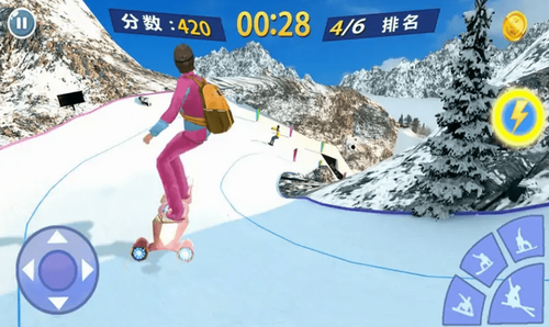 2、游戏中你可以不断的磨练你的滑雪技术,自由组合使用多样的技能和道具,不同的动作会给你带来不同的分数得分,加上动感的背景音效,带给我们最真实的滑雪游戏体验。