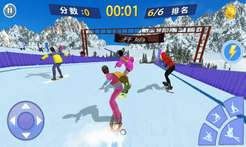 4、游戏中玩家将可以解锁不同的人物和滑板来增加自己雪上移动的基础速度,享受极致的滑雪竞技。
