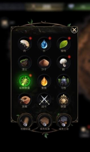 本作的蚁巢建设很简单明了,就是挖洞-铺巢-升级。