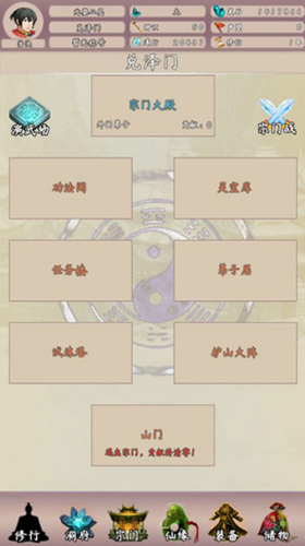 玩家可以在宗门中变身弟子,开始自己在游戏中的修仙之旅。沿途可以进行各种修仙活动,提高自己的修炼值,还可以种植各种植物,为制作丹药打下基础,甚至还有很多有趣的副本,带来无限的游戏乐趣。