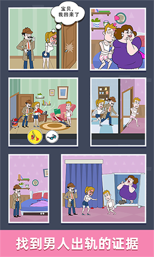 游戏中的关卡包括情侣小三事件、国宝失窃、空中大灾难、电锯惊魂、庄园谋杀等一系列场景等待你去解决和破获案件。所以赶紧去更多的场景,收集一些线索,揭开这些谜题的真面目吧!超级有趣的破案游戏,