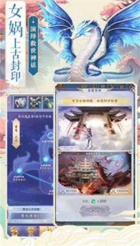 2、玩家可收集十大洪荒神兽,通过驯养、强化、突破等方式提升神兽等级。当你到达一定修为,更可以参加封神大会、重建女娲神殿,一步步成为洪荒时代的救世主。