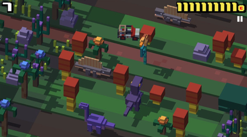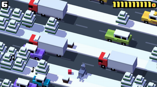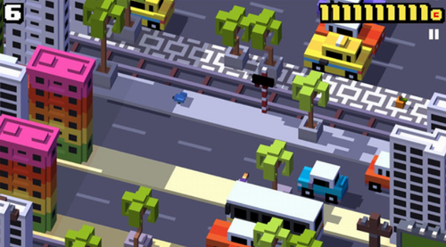 4、横向移动寻找生机。玩家们在玩这款游戏的时候不要陷入思维定势只会竖向移动,其实有时候横向移动也会有很好的效果,尤其是当人物快要脱离画面,而马路上的车辆也马上开来,这时候原地不动和向前直行都是死路,