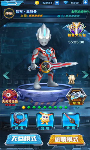 游戏还有无尽和剧情模式供大家选择。以酷炫动感的游戏场景,辅以角色、装备、宠物、武器等多元元素的完美融合,再现奥特曼华丽的战斗风格和科幻的场景元素,让玩家跑酷。