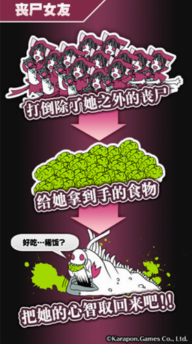 游戏包含了非常丰富的内容和各种有趣的玩法。游戏讲述了一个人类与僵尸的爱情故事。在游戏中,我们的男主已经和已经变成僵尸的女友同居了。你需要和她说话培养感情,走出去把其他僵尸的脑子切下来喂她,