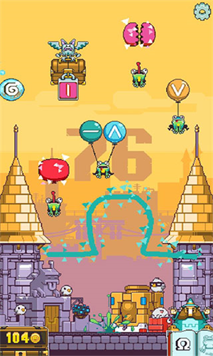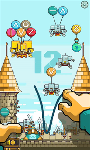 这个游戏的玩法比较新颖,灵感来源于跳舞毯,和它差不多。每个敌人乘坐气球从天而降,气球上写着不同的符号。玩家可以通过滑动屏幕,绘制相应的图案,轻松击破气球,消灭敌人,流畅控制手感。