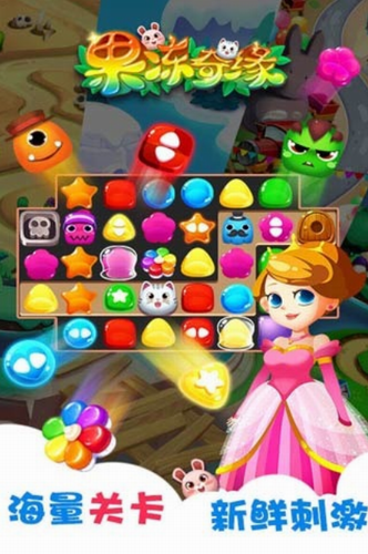 果冻奇缘最新版是一款充满奇幻色彩的休闲消除游戏。美丽的公主带着可爱的猫和粉兔闯入果冻世界,可恶的果冻怪设置了许多障碍阻止它们前进。他们能否顺利渡过难关,打败关老板的后妈,