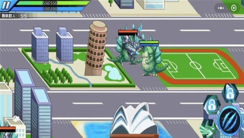 3、英勇战斗,城市机甲,大规模消灭怪物之间,操纵机甲保护城市。