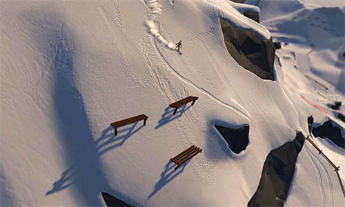 丰富开放的滑雪场景内容,有真实的背景音加持,比如玩家滑下山时,不仅雪板会留下痕迹,还能看到飞溅的雪雾效果。周围滚动的巨石,突然的雪崩,