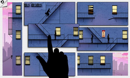 16、沿着画面中的顺序完成场景切换,让女主角能够爬上屋顶。