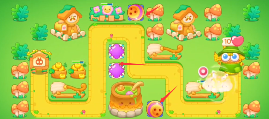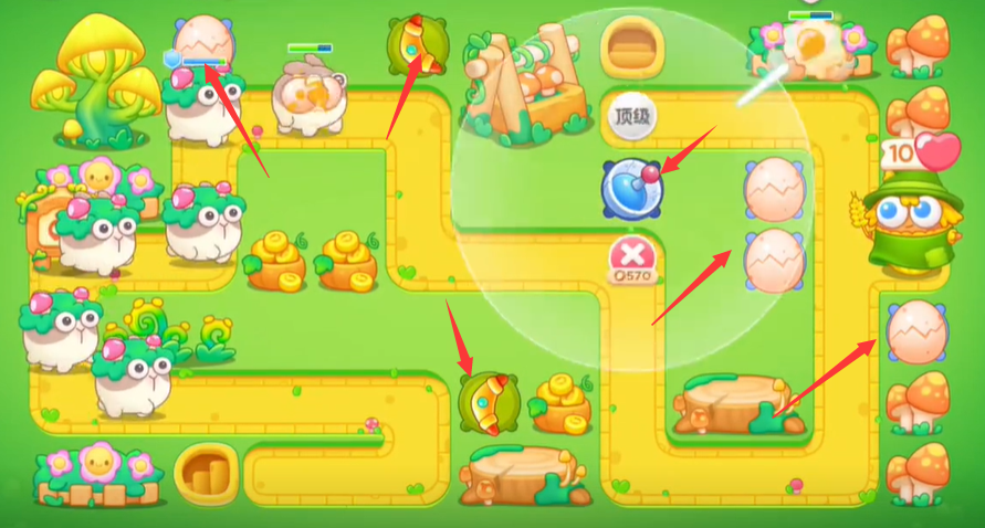 4。左边在怪物诞生地造鞭炮减速攻敌,清除全屏障碍;