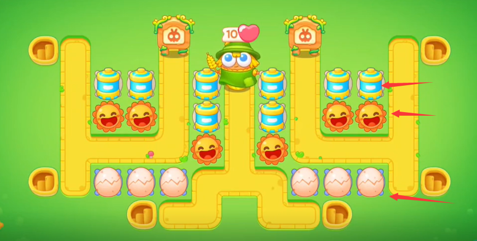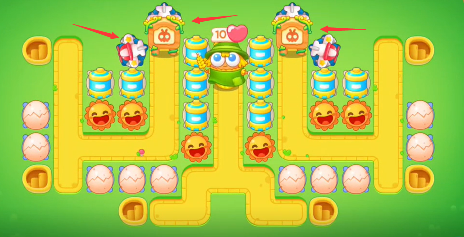 3。继续左边造鞭炮,右边造鸡蛋,清除右边所有障碍物;