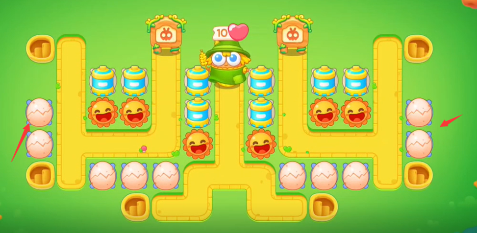 5。在最左边和最右边建两排蛋并升级;