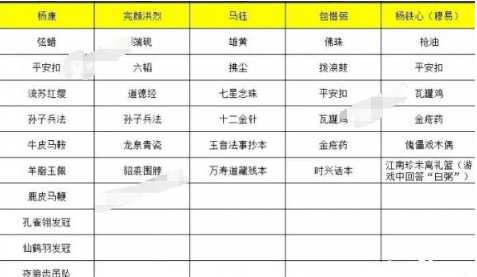 喜好:蒙古弯刀、治金疮药、口蘑炖鸡、鹿皮鞭、莫和乐、聚胜奴、牛皮鞍、夜狼牙坠、马奶酿、串蜡