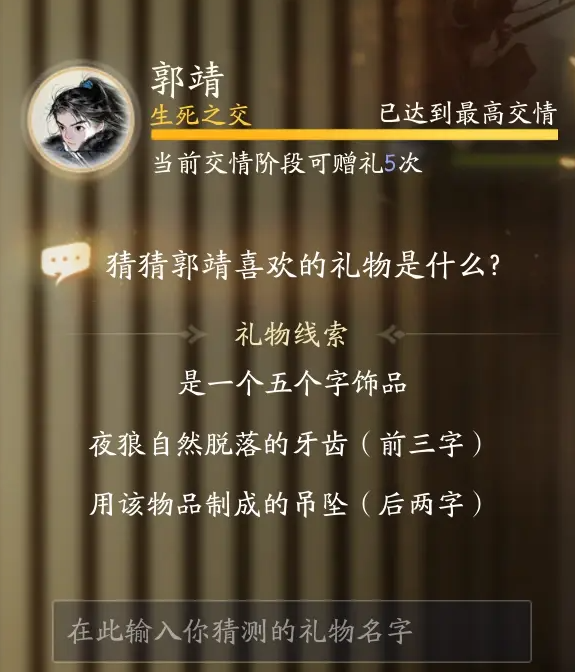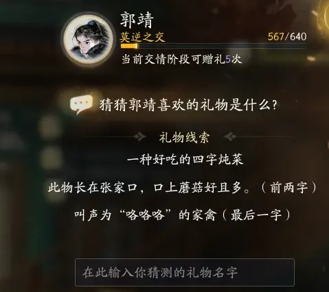 以上是边肖带来的郭靖最喜欢的礼物名称介绍。感兴趣的玩家去试试吧。更多令人兴奋的游戏策略在这个网站上。