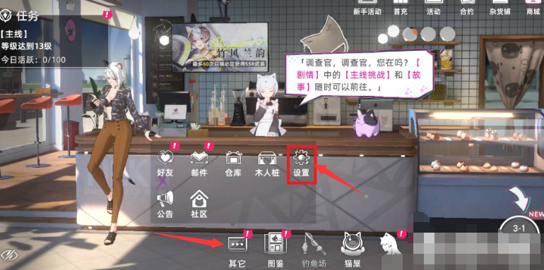 1。首先打开游戏进入主页面,点击底部的【其他】选择【设置】功能;