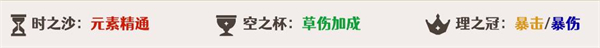 分析:既能增加草伤,又能提高装备的熟练度值,这两点都是阿尔海森所需要的。