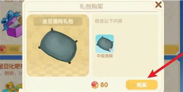 答:商城礼包中选择金豆,点击购买金豆渔网礼包。