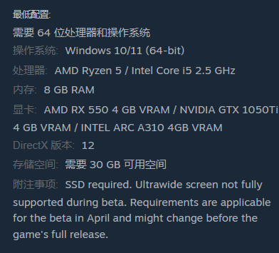 显卡: AMD RX 550 4 GB VRAM/NVIDIA GTX 1050Ti 4 GB VRAM/INTEL ARC A310 4GB VRAM