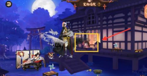 点击庭院皮肤切换回原来的庭院,然后去右边的宠物屋,再点击左边去后院,就可以看到神乐娃娃了。