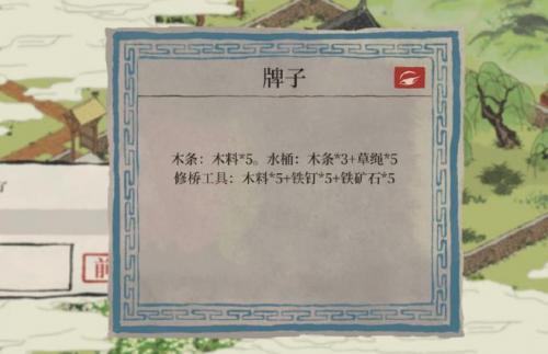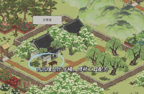 1.玩家需要在图中所示的位置找到公告牌,公告牌上有修桥工具的配方。