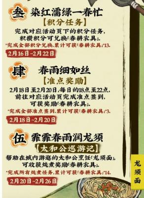 玩家在活动界面2月签到即可获得春耕工具* 14;