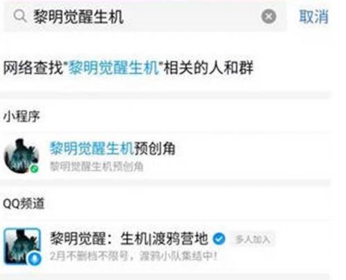 1.打开QQ或微信搜索[黎明觉醒生机]点击找到[黎明觉醒生机预创建角色]小程序;