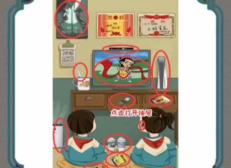 1.图中墙上的海报是哈利波波,杯子里有电动牙刷,电视是等离子电视,上面有机顶盒,旁边是游戏机52。点击打开抽屉找到翻盖手机和三体,右边的孩子戴着蓝牙耳机,地上有空气净化器,奶茶,手表,螺蛳粉。