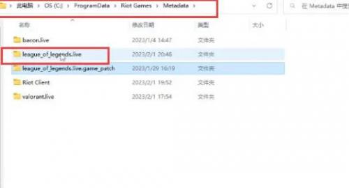 2、接着打开C盘路径【C:ProgramDataRiot游戏元数据英雄联盟。直播】