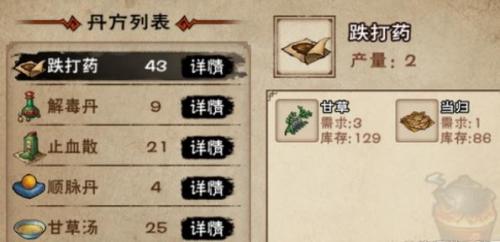 烟雨江湖丹药配方介绍