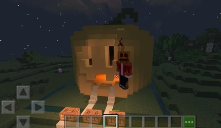 3、然后拿起手中的剪刀,在南瓜上右击,南瓜就会被修剪成一个南瓜头。