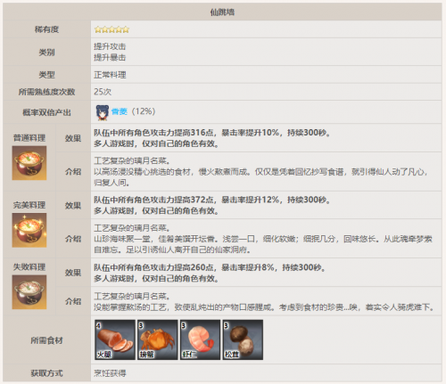 以上就是原神仙跳墙食谱介绍的全部内容,更多精彩内容尽在cg素材网。想要了解更多游戏攻略资讯,玩家可以收藏cg素材网攻略大全。