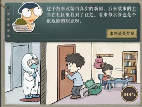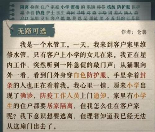 我正在屋里工作,突然听到一阵急促的敲门声。从猫眼望出去,看到门外有人穿着白色防护服,拿着印章看着我。