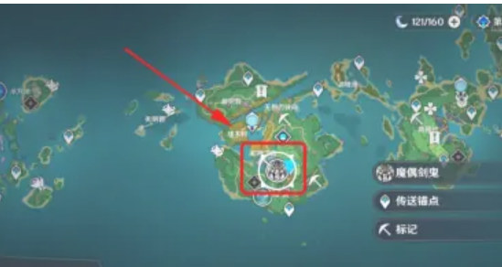 1、首先打开原神地图,选择【蛇神伊娜妻头】所在位置进行传送;