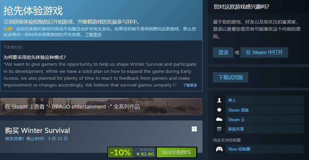 一、购买链接:https://store.steampowered.com/app/1394960/Winter_Survival/