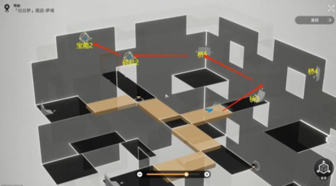 6.恢复梦想泡泡,通过桥3、桥5获得碎片2,找到第五个宝箱;