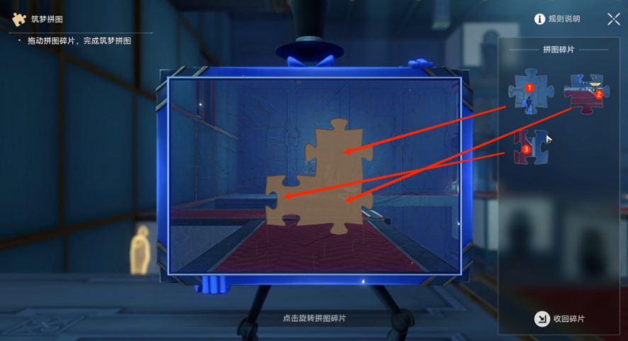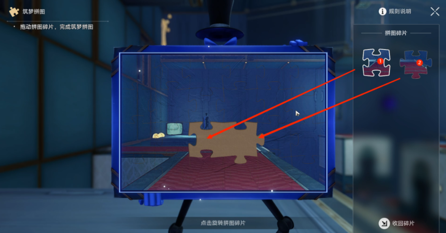 11、第四次进入拼图场景时,先完成拼图(图中为四个拼图);