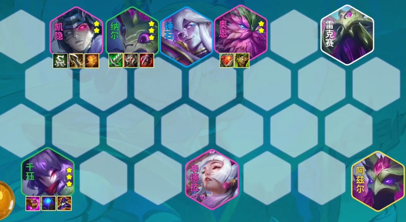 6.九人口:优先D出3星凯隐和2星阿兹尔。