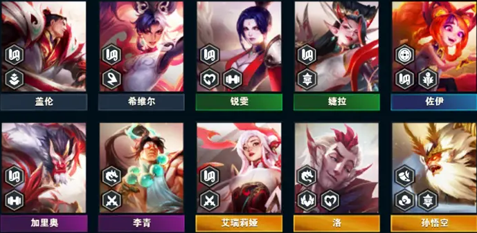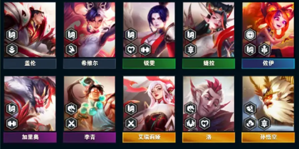 一、成员:希维尔+锐雯+婕拉+佐伊+盖伦+加里奥+李青+艾瑞莉亚+罗+孙悟空