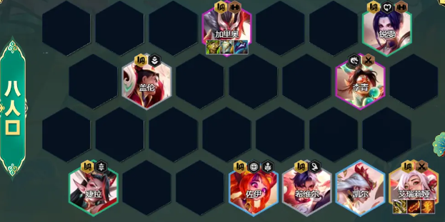 1、五人:先形成3张剪纸,然后过渡到5张剪纸。先把剑姬的装备给希维尔,加里奥的装备先给前排。