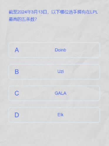 2、截至2024年3月13日,以下哪位选手在LPL中五杀数最高?