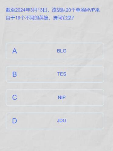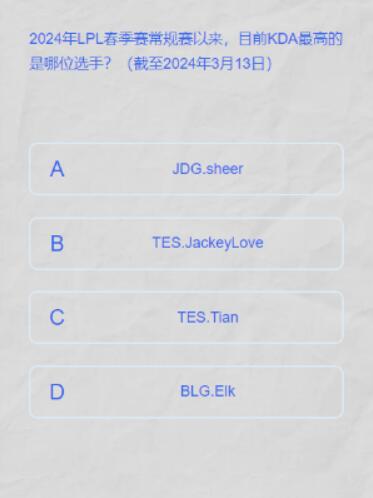以上就是小编为玩家带来的lpl春季赛答题挑战答案2024的全部内容。您可以在这里找到问答挑战的答案。