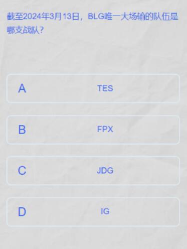 8. 截至2024年3月13日,BLG唯一输球的队伍是哪支队伍?