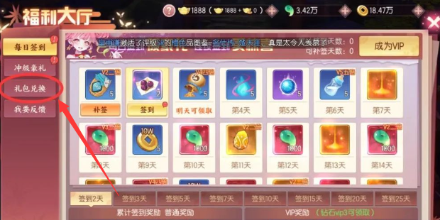 2、然后进入福利厅,点击左侧的【礼包兑换】选项;