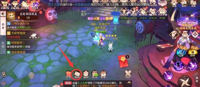 4、最后返回游戏主页面,点击对话框上方的【邮件】打开,成功领取福利。