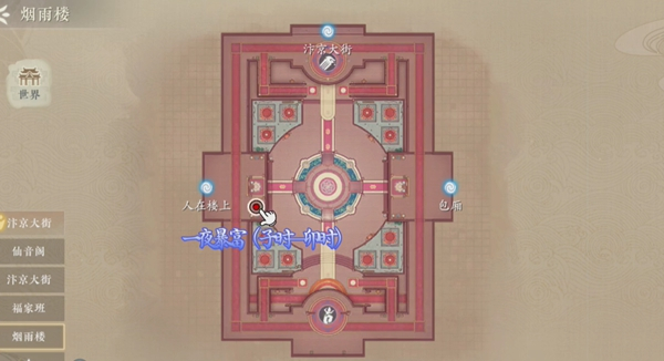 1、午夜至深夜半夜,前往烟雨楼二楼左侧。